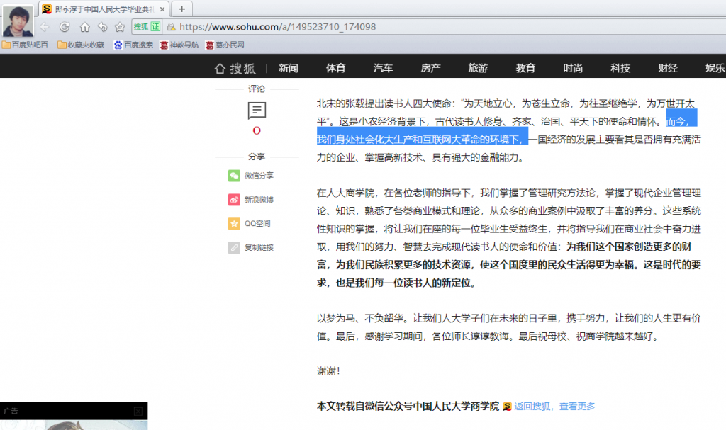 本文为找钢网首席战略官、高级副总裁、原中央电视台新闻主播、人大商学院EMBA1404班硕士研究生郎永淳在2017届毕业典礼上的发言。